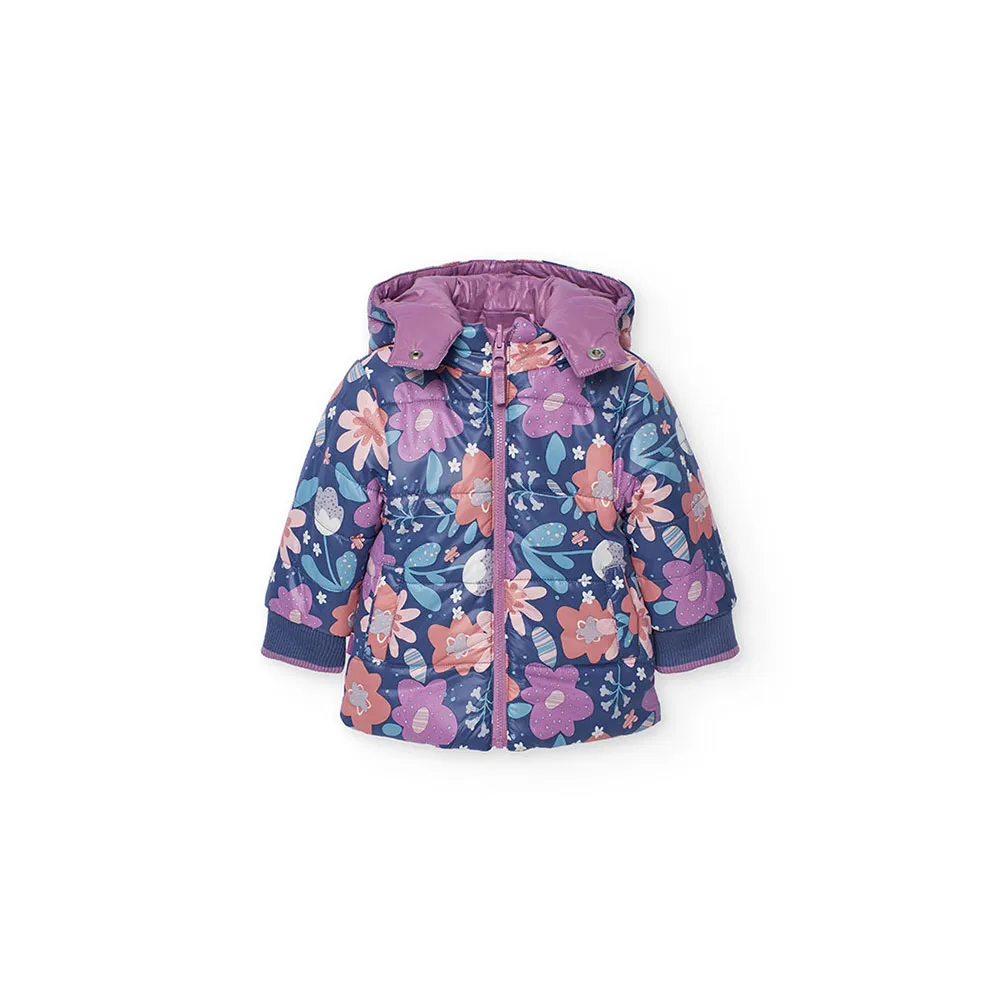 Wendbarer Parka für Mädchen aus bedrucktem Funktionsgewebe, ideal für die Übergangszeit und den Winter.