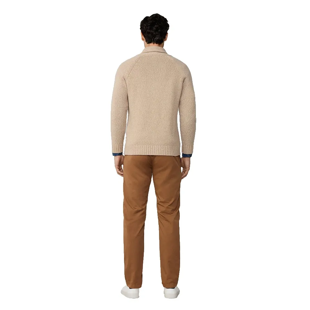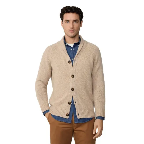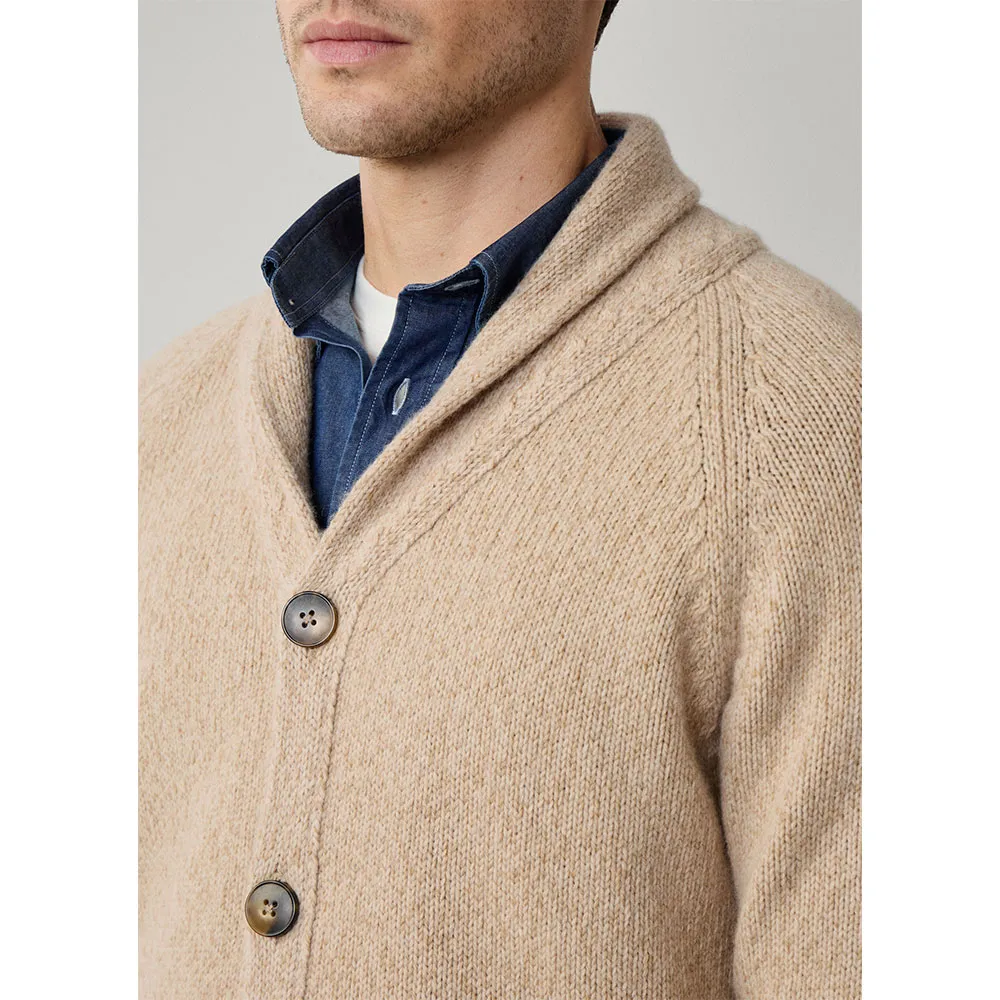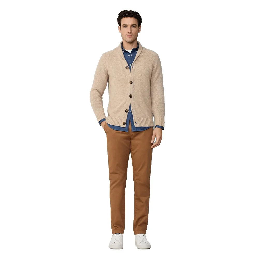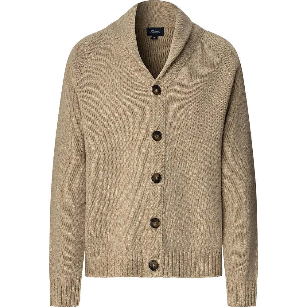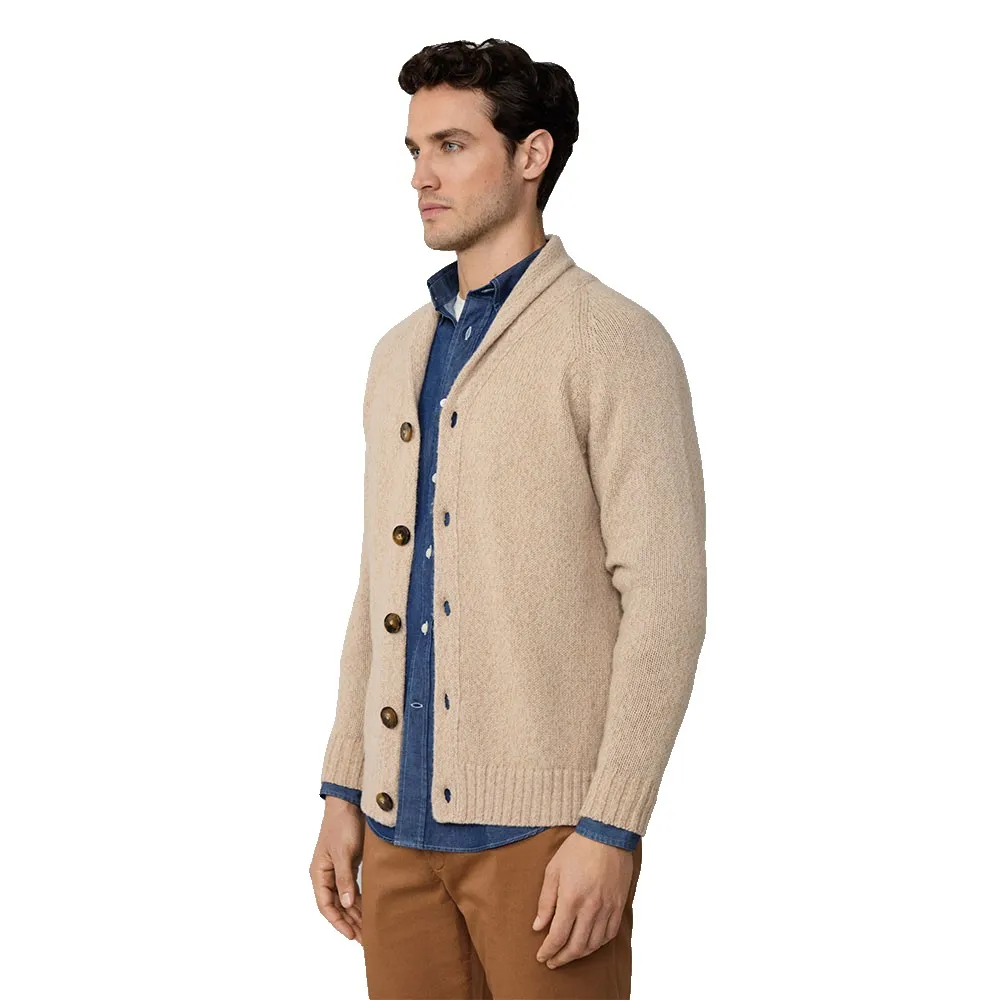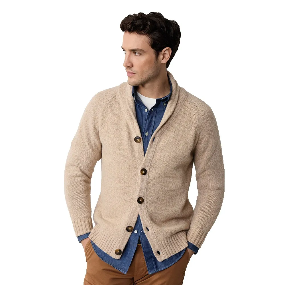 Das prägende Merkmal dieses luxuriösen Pullovers ist sein eleganter Schalkragen. Dieses klassische Designelement spendet nicht nur zusätzliche Wärme, sondern umrahmt auch das Gesicht wunderschön und verleiht jedem Outfit einen Hauch von altem Charme und Raffinesse. Er bietet eine distinguierte Alternative zu einem Standard-V-Ausschnitt und schafft eine weichere, anmutigere Halslinie, die sowohl bequem als auch optisch ansprechend ist. Die Vorderseite wird mit einer Reihe hochwertiger Knöpfe geschlossen, was vielseitige Styling-Optionen ermöglicht, sei es offen getragen für ein entspanntes Gefühl oder zugeknöpft für ein gepflegteres und eleganteres Erscheinungsbild.