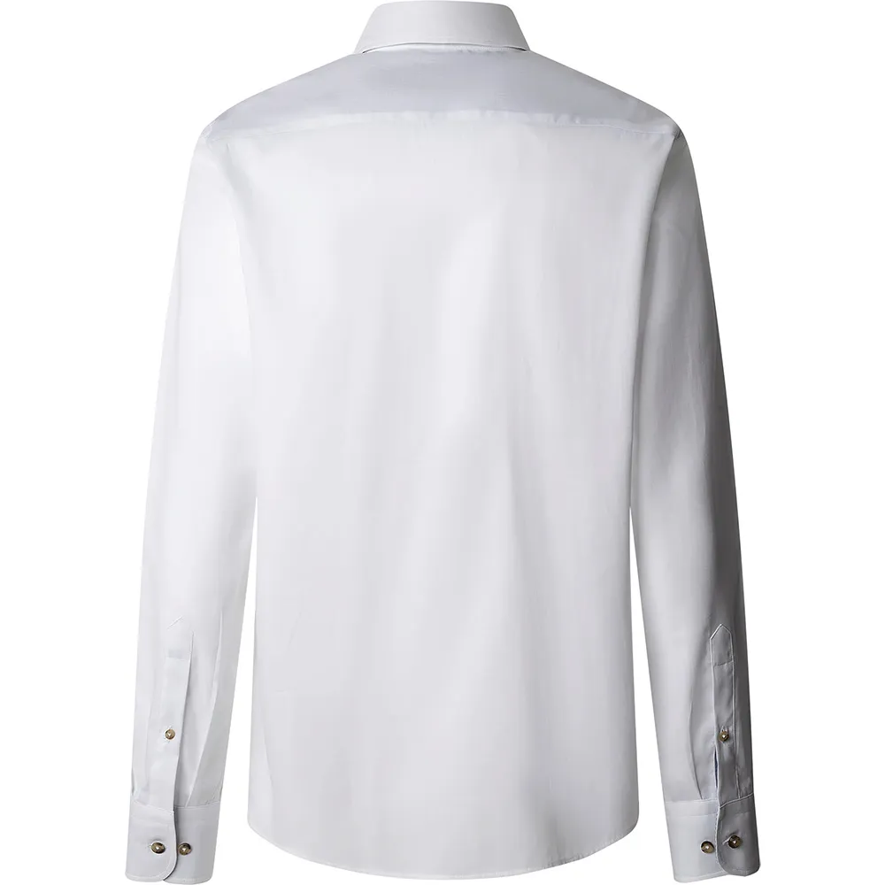 Ein leichtes Flanellhemd mit Kontrastbesätzen und gesticktem Markenlogo auf der Brust, mit einem Besatzdetail unter der Knopfleiste.