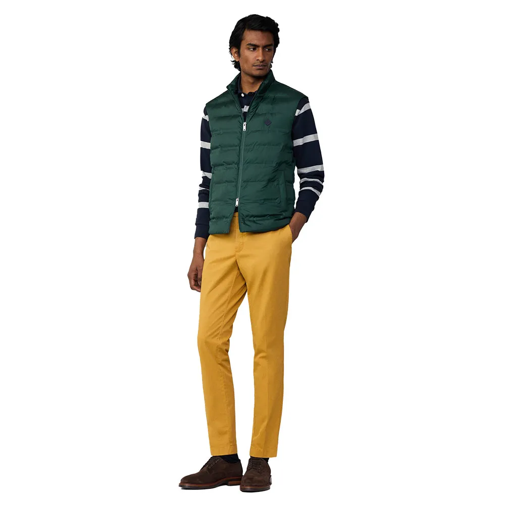 Erleben Sie unvergleichliche Vielseitigkeit mit dieser leichten, wattierten Weste. Ihre schlanke, stromlinienförmige Silhouette ist so konzipiert, dass sie essentielle Isolierung bietet, ohne unnötig aufzutragen, was sie zu einer idealen Wahl für Lagenlooks macht. Tragen Sie sie mühelos über einem klassischen Button-Down-Hemd oder einem Feinstrickpullover für einen Smart-Casual-Look, oder platzieren Sie sie unter einem schwereren Mantel als zusätzlichen Schutz gegen die Winterkälte. Das Design ist klar und zeitgemäß und sorgt dafür, dass es sowohl formelle als auch legere Outfits mühelos ergänzt.