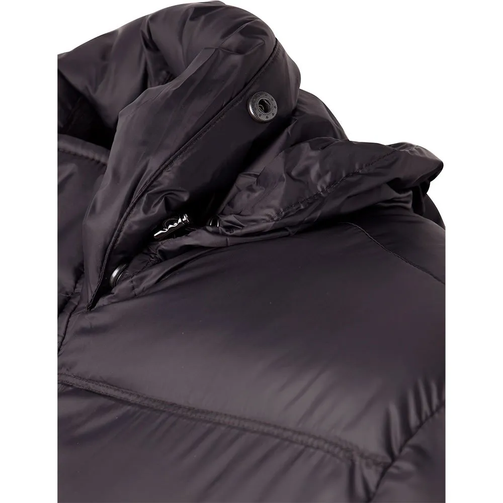 Die schwarze Pufferjacke besteht aus glänzendem Nylon. Dies ist die perfekte Daunenjacke, um Sie jederzeit vor den Elementen zu schützen. Es verfügt über eine Isolierung aus recycelter Füllung, die Sie bei kaltem Wetter warm und bequem hält, eine abnehmbare Kapuze, einen erhöhten Kragen, einen durchgehenden Reißverschluss und verdeckte Knopfverschlüsse, gerippte Sturmbündchen und zwei untere Pattentaschen. Zusätzliche Merkmale sind interne Reißverschlusstaschen für alle wichtigen Dinge und kontrastfarbene Paspeln auf der Innenseite. Der schwarze Puffer ist wie getragen mit unserem ikonischen Silikonlogo auf dem linken Ärmel versehen.