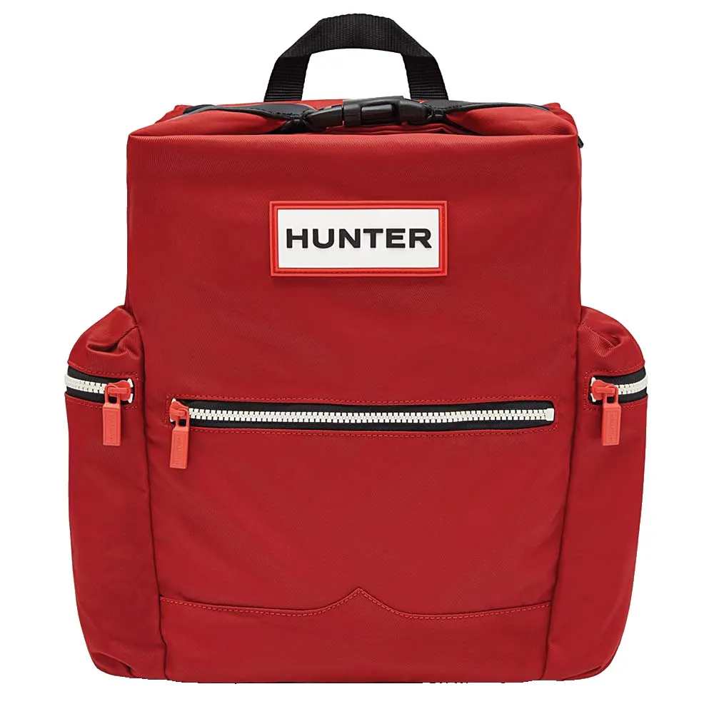Wasserabweisendes Nylon-Twill-Außenmaterial. Wasserabweisendes Jacquard-Futter für zusätzlichen Schutz der Gegenstände. Gepolsterte, verstellbare Rückengurte für erhöhten Komfort. Typische Hunter-Reißverschlüsse in Rot/Weiß/Schwarz. Größe: Höhe: 47 cm Tiefe: 11.5 cm Breite (ohne Taschen): 27 cm Fassungsvermögen: 17 l.