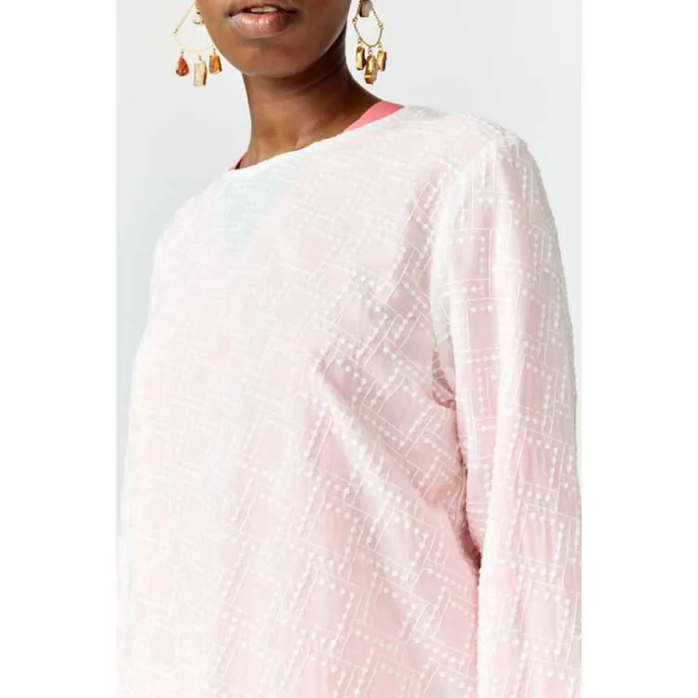 Ein hüftlanges Shirt mit normaler Passform. Mit einem Stickmuster versehen.