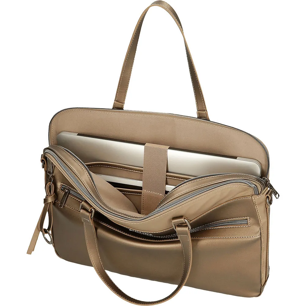 Zwei unabhängige Reißverschlussfächer, eines davon speziell für einen Computer bis zu 15,6 Zoll (35,5 cm hoch x 26 cm breit x 3 cm tief).