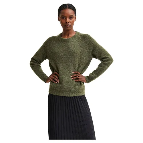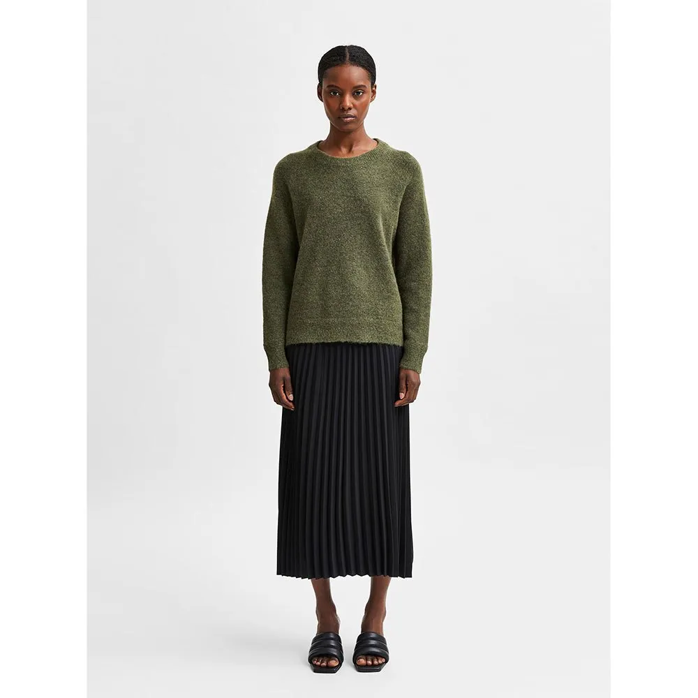 SELECTED Lulu Rundhalspullover für Damen | Luxuriöser Pullover aus Wolle-Alpaka-Mischung