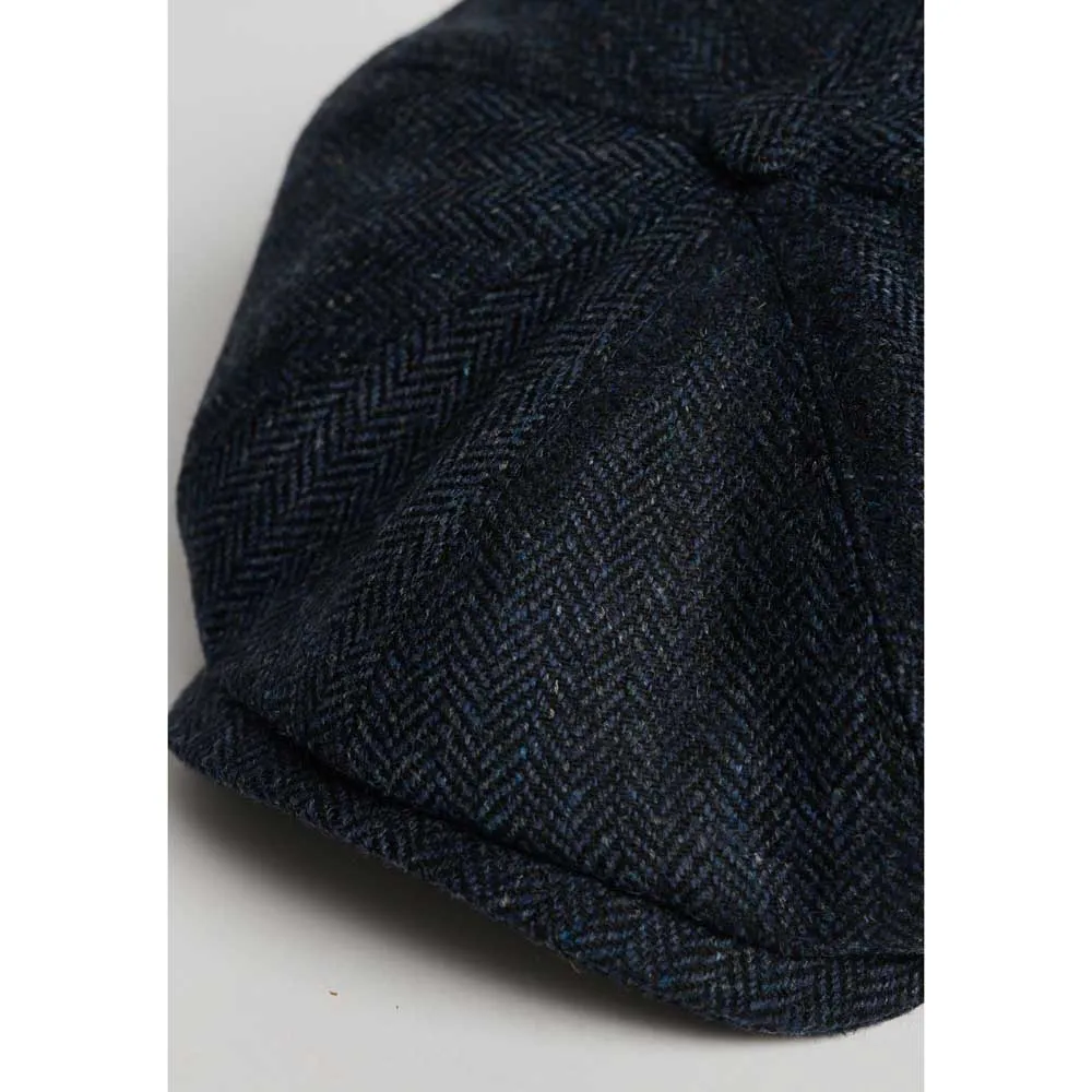 Ein klassisches Erbstück, das in der Arbeiterklasse verwurzelt ist. Die Schiebermütze ist eine traditionelle und dennoch zeitgemäße Interpretation eines bewährten Designs mit ihrer 8-teiligen Form und einem gebogenen Schirm, der eine modernere Note in eine authentisch gestaltete Mütze bringt. Gefertigt aus Wolltweed mit einem traditionellen Acetatfutter, wird die Schiebermütze Ihr Outfit perfekt abrunden.