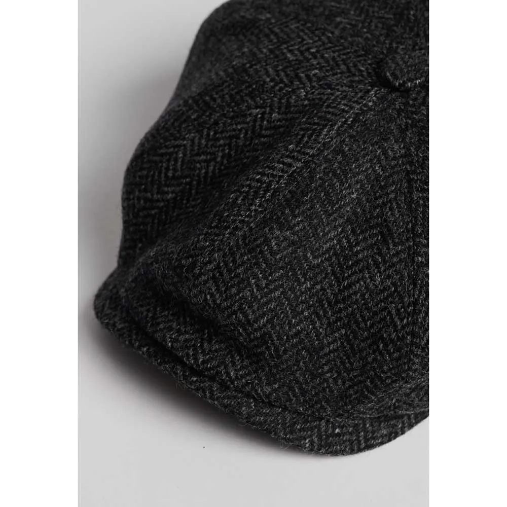 Ein klassisches Erbstück, das in der Arbeiterklasse verwurzelt ist. Die Schiebermütze ist eine traditionelle und dennoch zeitgemäße Interpretation eines bewährten Designs mit ihrer 8-teiligen Form und einem gebogenen Schirm, der einen moderneren Touch in eine authentisch gestaltete Mütze bringt. Gefertigt aus Wolltweed mit einem traditionellen Acetatfutter, wird die Schiebermütze Ihr Outfit perfekt abrunden.