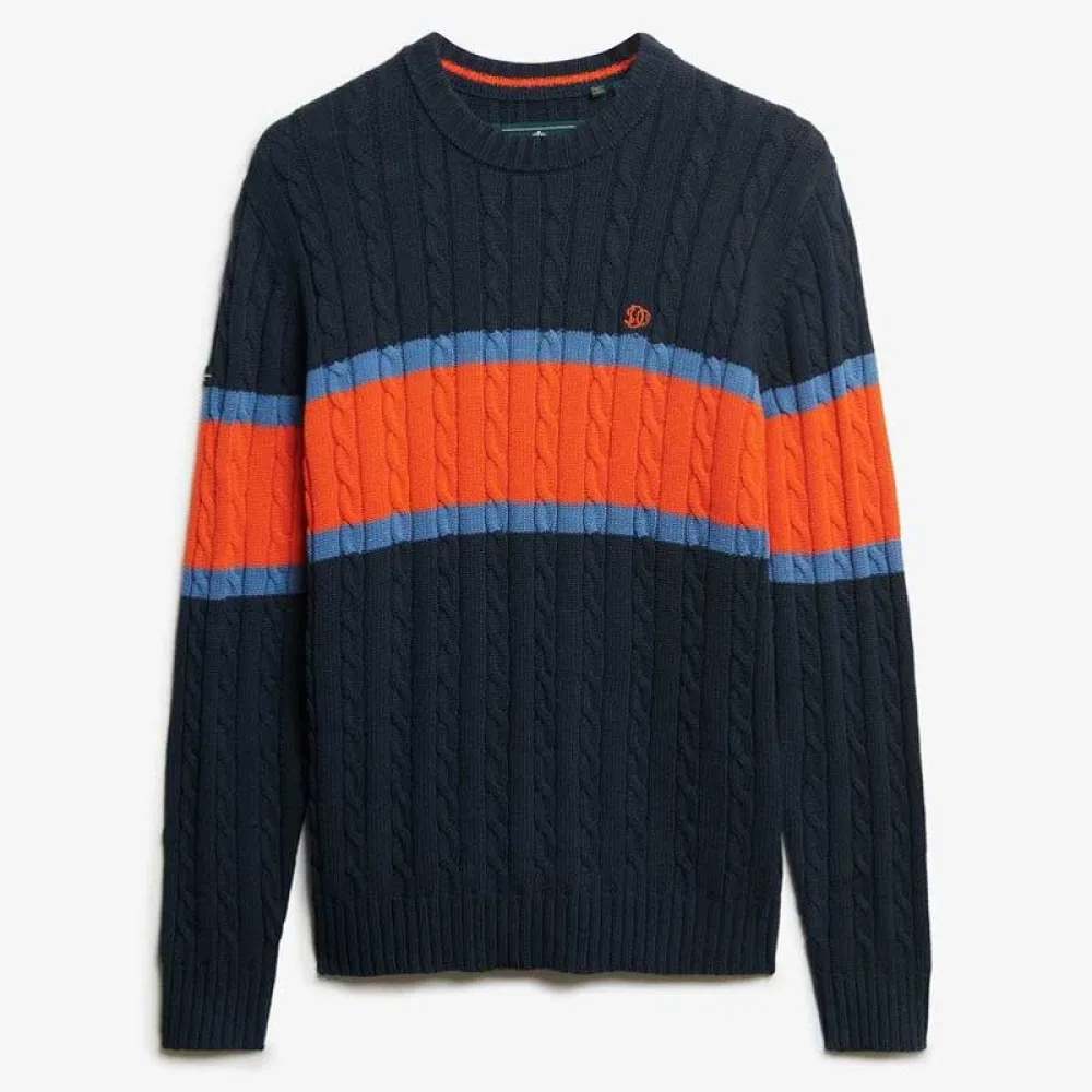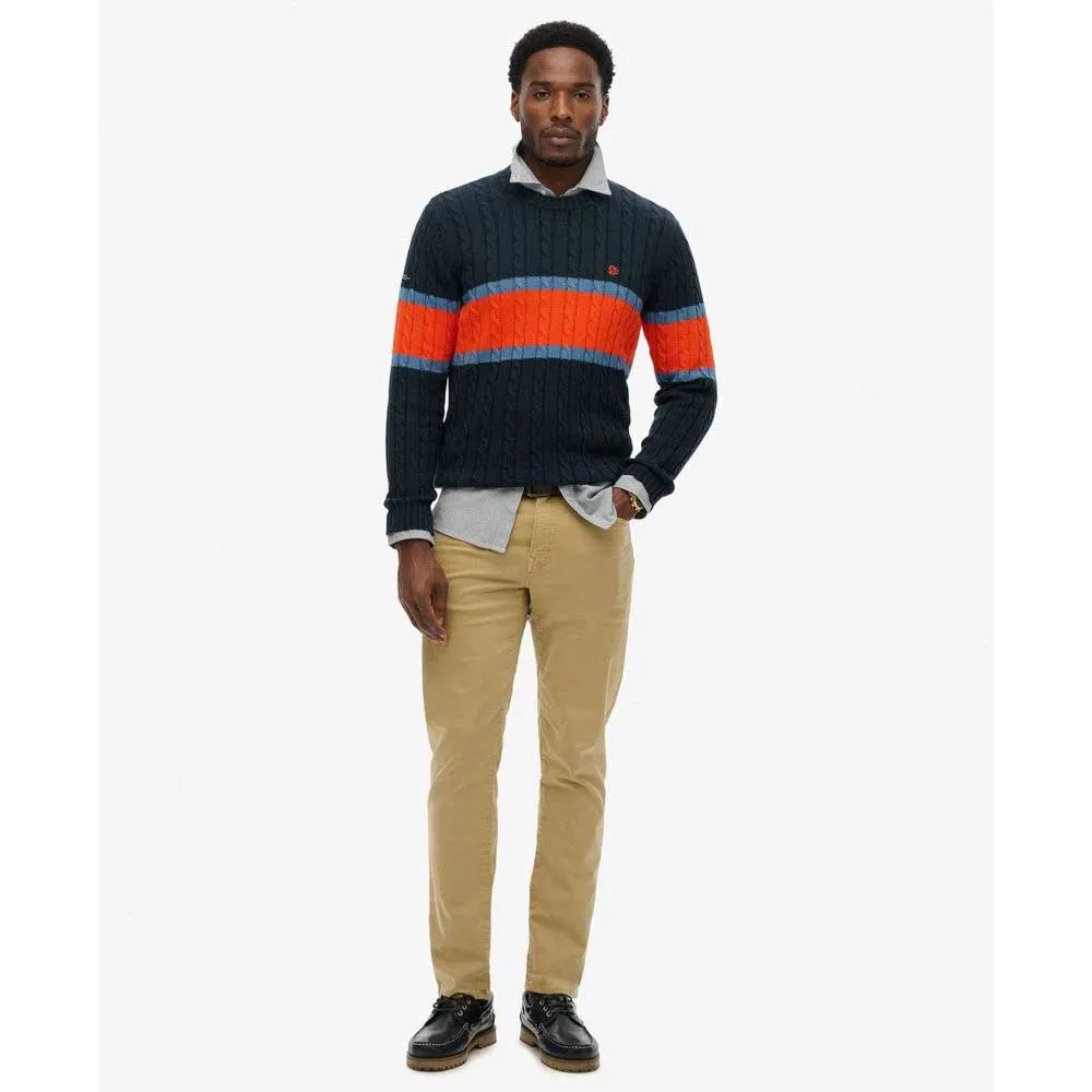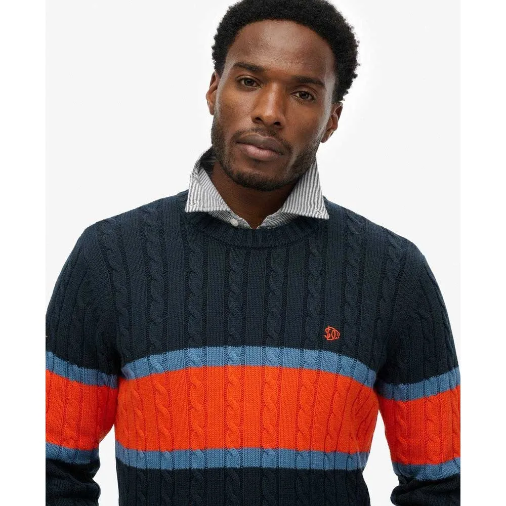 Der Baumwoll-Streifen-Zopfmusterpullover ist ein ikonischer Winterwärmer, der Sie luxuriös einhüllt. Dieser Strickklassiker, der Ihrem authentischen Selbst treu bleibt, wurde zusammengestellt, um Ihrer Freizeitkleidung ein hochwertiges Vintage-Gefühl zu verleihen, das sich nahtlos in Ihre unverwechselbare Garderobe einfügt. Der Zopfmusterpullover, der mit der klassischen Superdry-Qualität versehen ist, begleitet Sie stilvoll und warm durch den Tag.