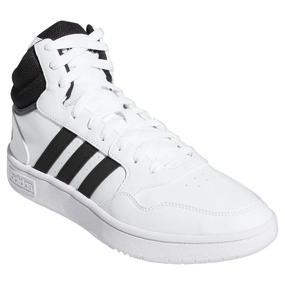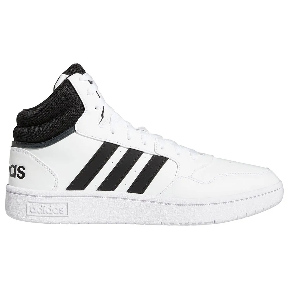 Step up your style with the ADIDAS Hoops 3.0 Mid Women´s Trainers. Drawing inspiration from classic basketball heritage, these mid-top sneakers bring a timeless court look to your everyday wardrobe. The smooth synthetic leather upper features the iconic 3-Stripes, while a padded mesh collar and cushioned sockliner provide outstanding all-day comfort and ankle support. Built on a durable rubber cupsole for reliable traction, these versatile trainers pair perfectly with any outfit. Elevate your look with this perfect blend of retro style and modern comfort
