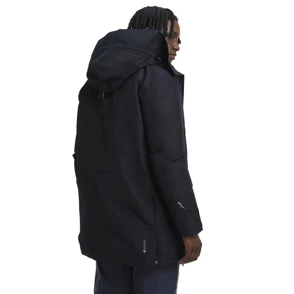 This is our most comprehensive parka in the GORE-TEX range. Featuring an ultra-protective hood, multiple pockets, and visible buttons for a more urban look, it delivers on both style and warmth with its feather padding.