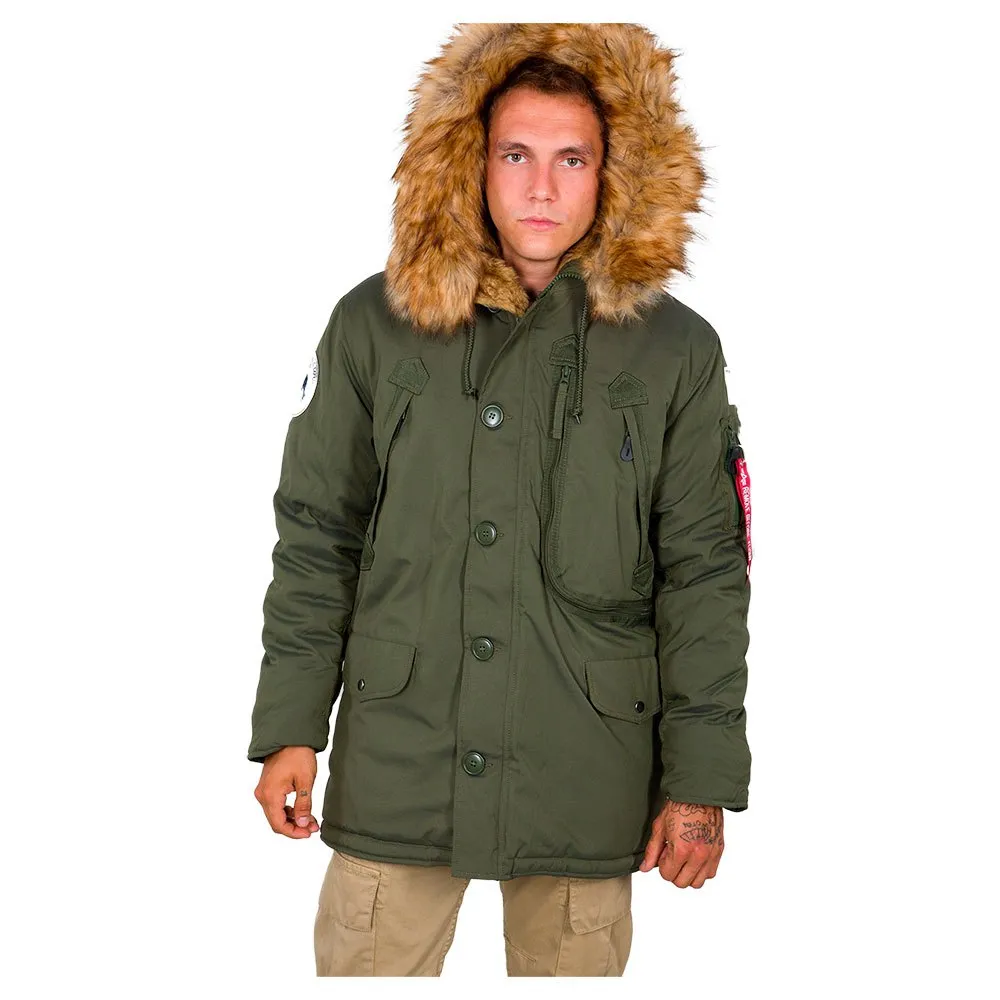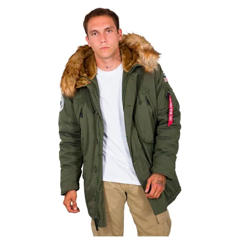 Brave the harshest elements with the Alpha Industries Polar Jacket. Engineered for extreme cold, its tough Oxford Nylon shell offers superior wind and water resistance. Polyester filling and a nylon lining lock in warmth, while the spacious, Mouton-lined hood with removable faux fur provides extra protection. A standard fit allows for easy layering, and multiple pockets, including a document compartment, offer ample storage. Finished with signature patches, this jacket is your ultimate defense against the chilliest winds and heaviest snowfalls