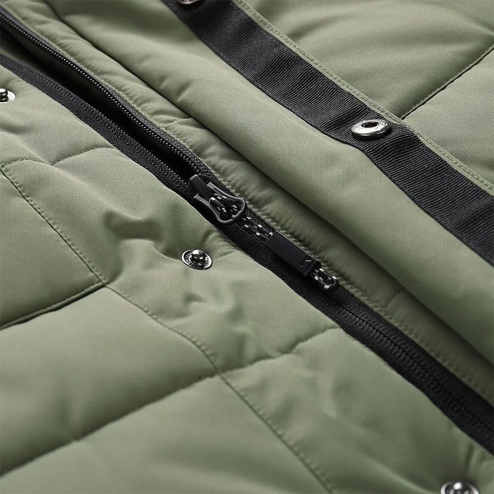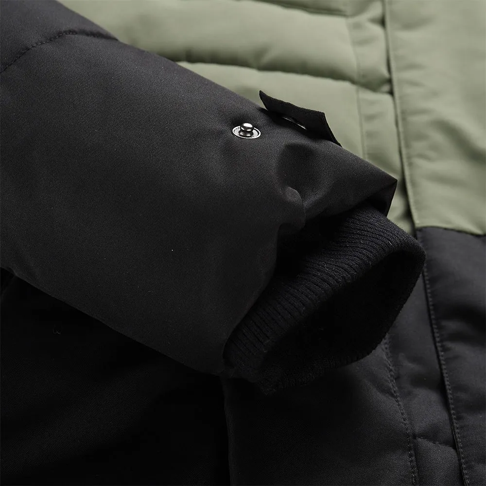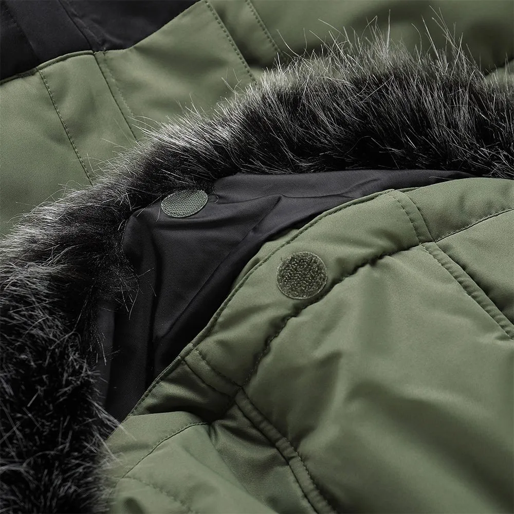 material waterproof, vapour permeable, wind-resistant, melange | material finish PTX membrane, water column 3 000 mm, vapour permeability 3 000 g/ m2/ 24h, DWR | insulation thick | cut regular fit | hood non-removable, with draw cords | fur removable | sleeves cuff with snap adjustment, with rib cuff inside | bottom part with regulation of width | pockets total 5 | patch on the sleeve.