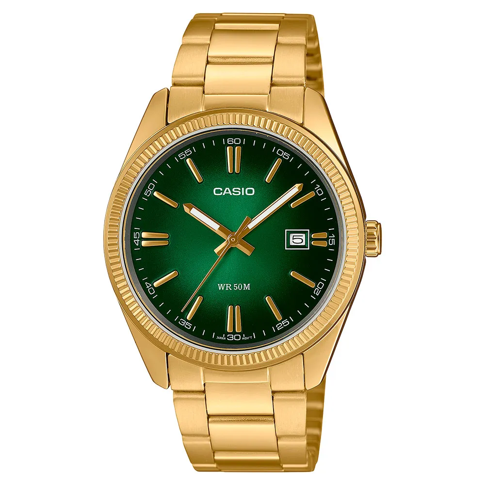 The CASIO MTP-1302PGC-3AVEF is powered by a precise quartz movement, guaranteeing accurate timekeeping. Quartz technology offers superior reliability and requires minimal maintenance, ensuring your watch remains a dependable companion for years to come. The watch is also incredibly easy to use, with a simple three-hand analog display and a convenient crown for time and date adjustments.