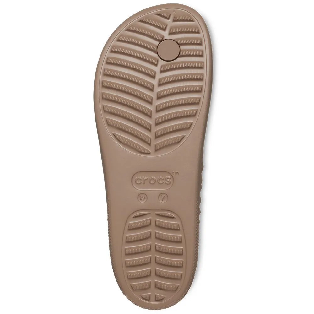 Geometric molded design Style-forward heightened outsoles Lightweight, buoyant Croslite foam construction Easy to clean and quick to dry Customizable with Jibbitz charms Soft TPU toe posts Iconic Crocs Comfort: