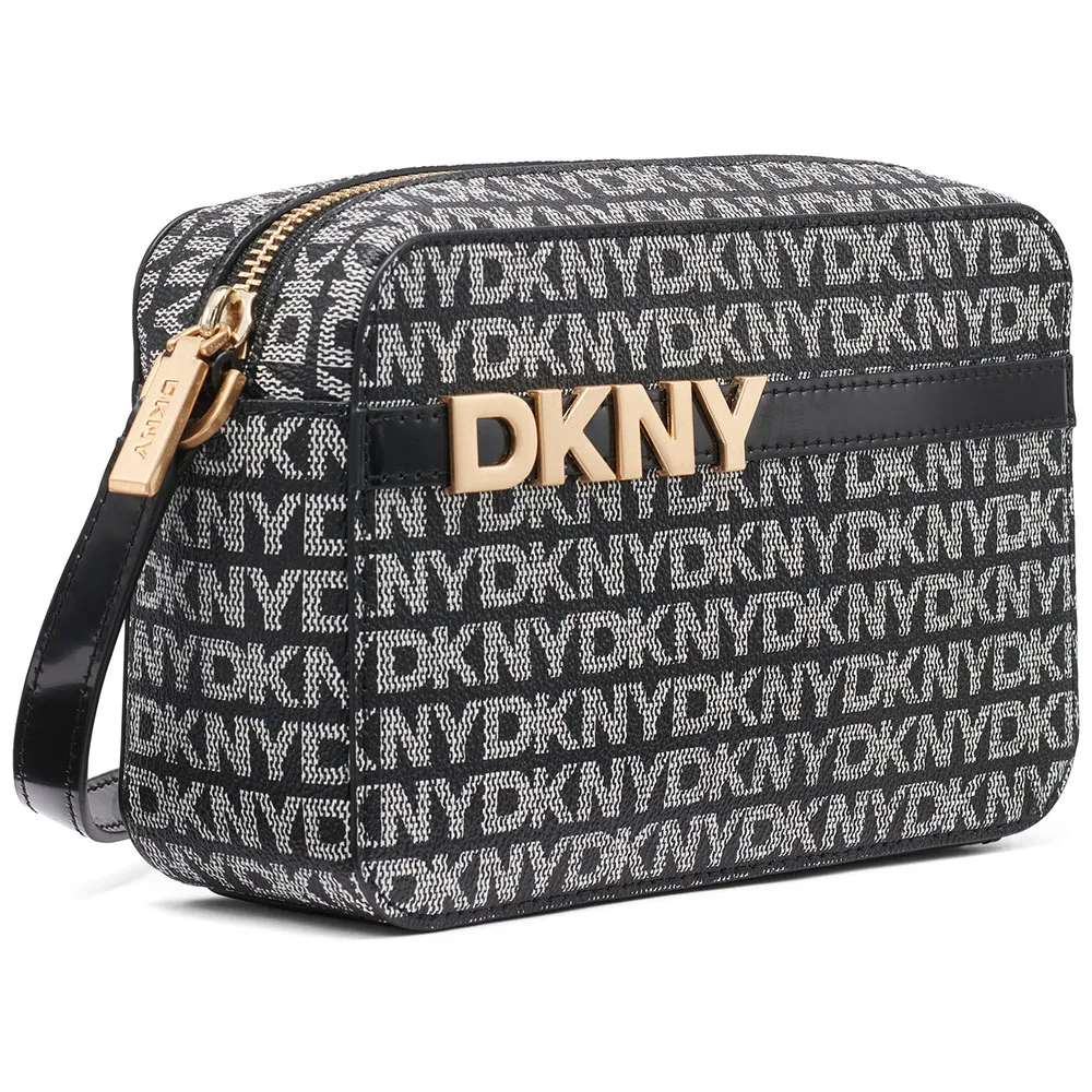 * Iconic and Recognizable Design: The Avril stands out with its classic camera bag shape, adorned with the signature DKNY monogram print that exudes sophisticated brand appeal. The polished metal logo on the front serves as a definitive mark of quality and high-fashion.