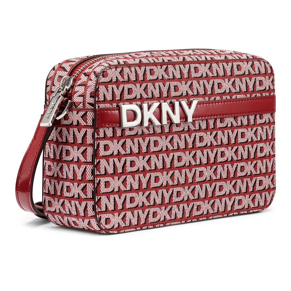 * Iconic and Recognizable Design: The Avril stands out with its classic camera bag shape, adorned with the signature DKNY monogram print that exudes sophisticated brand appeal. The polished metal logo on the front serves as a definitive mark of quality and high-fashion.