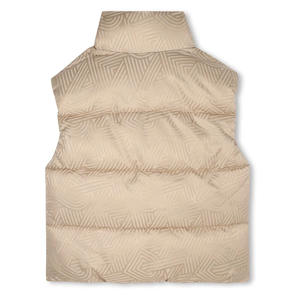The standout feature of this piece is its unique and sophisticated design. It showcases a stunning mini-me "crosswalk" pattern rendered in a premium all-over jacquard weave. This intricate design elevates the vest from a simple staple to a true fashion item, allowing your young trendsetter to express her unique style. The wadded padding provides substantial warmth without adding unnecessary bulk, offering a sleek silhouette and complete freedom of movement for play, school, and everything in between.