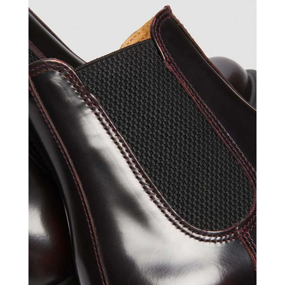 The DR MARTENS Flora boots in Cherry Red are a stylish and versatile choice for women looking to make a statement with their footwear. These boots feature a sleek, ankle-high design with elastic side panels for easy on and off. The vibrant cherry red color adds a pop of color to any outfit and is sure to turn heads.