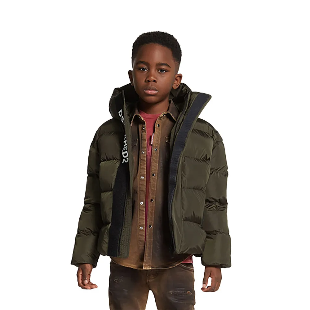 True to the Dsquared2 legacy, this jacket boasts an unmistakable metropolitan vibe. The clean lines and modern silhouette are punctuated by signature brand detailing, instantly elevating any outfit from simple to standout. It’s the perfect piece to layer over a t-shirt, hoodie, or sweater, creating a look that is both effortlessly cool and unmistakably luxurious. Let your child express their unique personality with this pinnacle of urban fashion.
