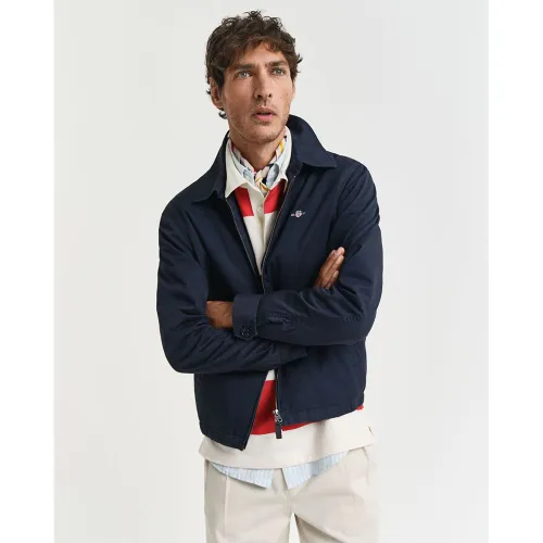 A modern update on GANT´s beloved windcheater, this jacket blends timeless style with seasonal function. Crafted from a water-repellent cotton twill shell, it´s half-lined for warmth and breathability. The regular fit sits comfortably above the hips, enhanced by a partly elasticated hem for a perfect silhouette. Premium details include four pockets, a leather zip pull, and buttoned cuffs. Finished with signature GANT logo embroidery and made with recycled materials, it´s a smart, sustainable choice for any wardrobe