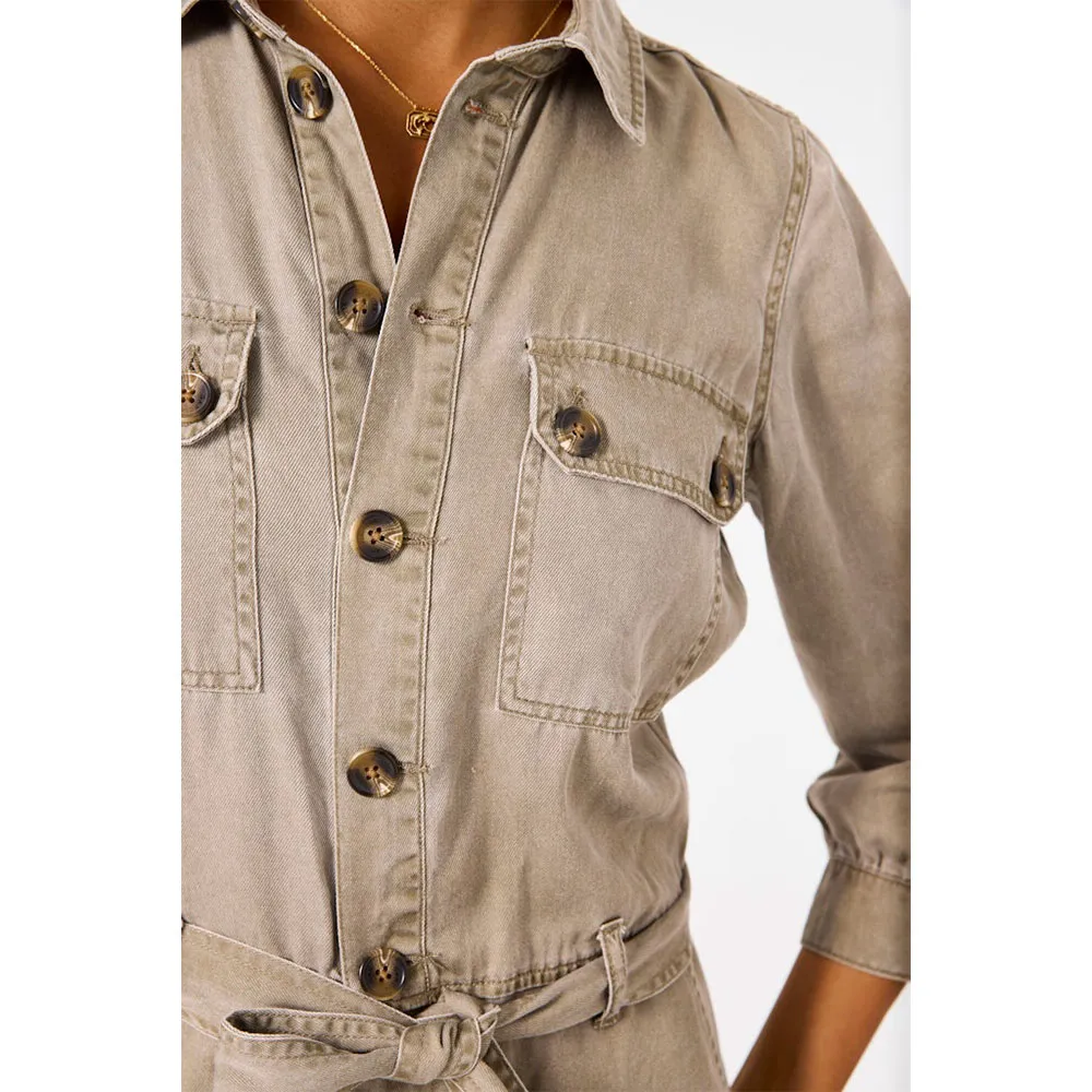 Discover effortless sophistication with the GARCIA B50119 jumpsuit. Crafted from incredibly soft and fluid 100% Lyocell, this one-piece drapes beautifully for a flattering silhouette that blends comfort and style. It features elegant 3/4 sleeves, a classic collar, and a button-down front for a touch of tailored polish. Cinch your waist with the adjustable self-tie belt to create a stunning figure, while practical side pockets add functionality. Incredibly versatile, it’s your go-to solution for a complete, chic outfit for any occasion