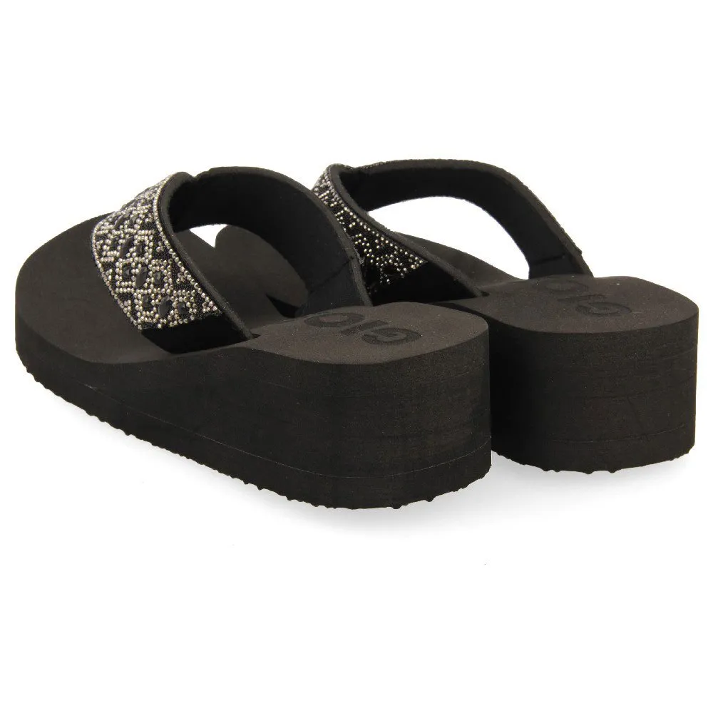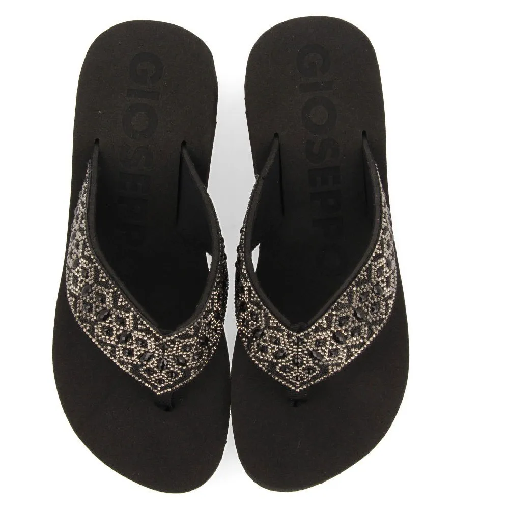 GIOSEPPO 71997 Women´s Black Crystal Wedge Flip Flops