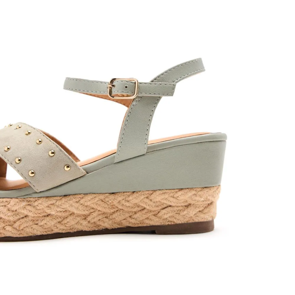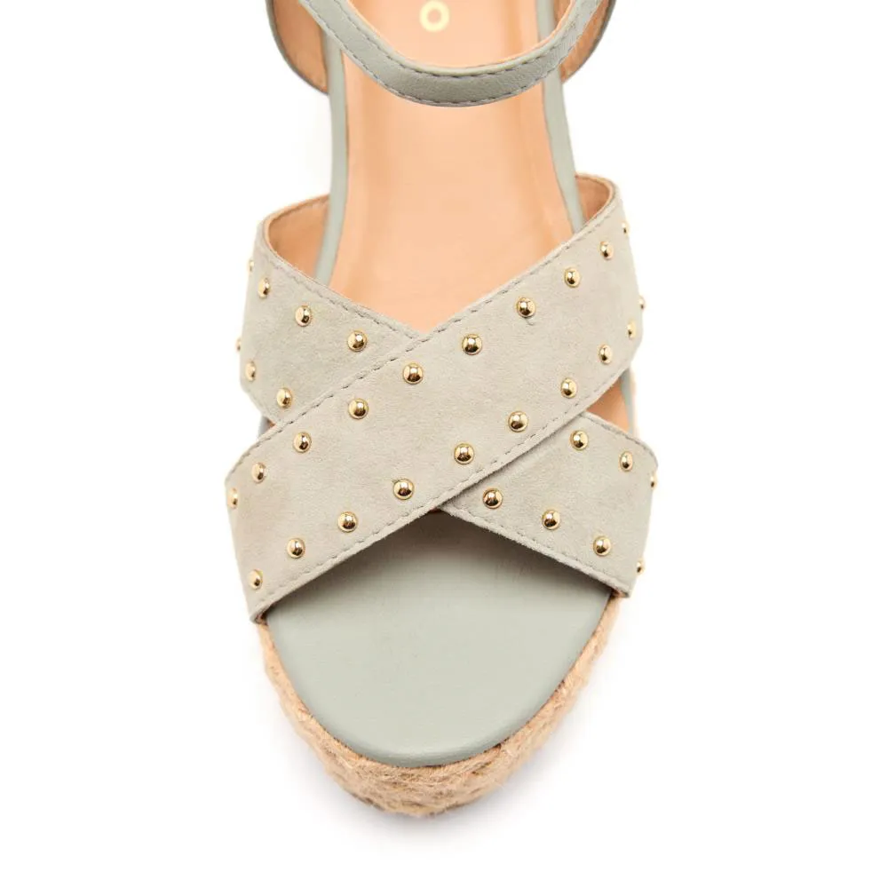 The Gilsum sandal is a celebration of texture and detail. The upper is crafted from wonderfully soft suede leather, providing a luxurious feel and a premium look. This classic design is given a modern twist with delicate stud decorations, adding a subtle touch of edgy refinement that catches the light and draws the eye. The true showstopper is the beautifully woven raffia wedge, a signature of summery, coastal-inspired style. This natural element not only provides a striking visual contrast but also ensures the wedge remains surprisingly lightweight for its height.