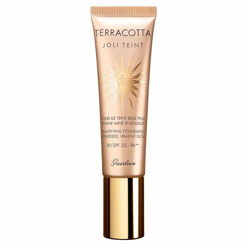 Achieve a naturally radiant and flawless complexion with GUERLAIN Terracotta Joli Teint Make-up base. This innovative, beautifying base perfects the skin, creating a smooth, even canvas for your makeup application while imparting a healthy, sun-kissed glow. Perfect for all skin types, this luxurious formula glides on effortlessly, blurring imperfections and minimizing the appearance of pores for a naturally perfected look. Experience the magic of Terracotta Joli Teint and unlock the secret to a luminous, long-lasting, and effortlessly chic complexion.