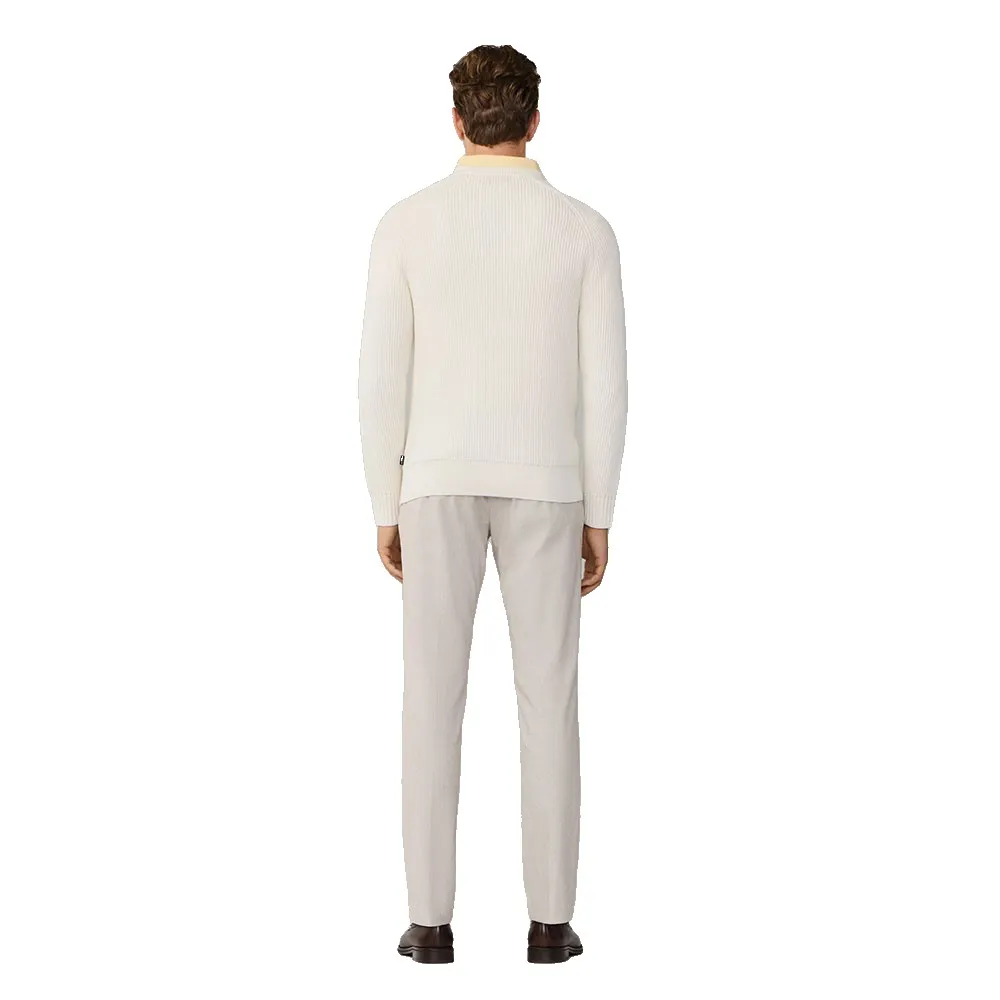 - Fully Fashioned and Finished with ribbed trims at collar, cuffs and hem.