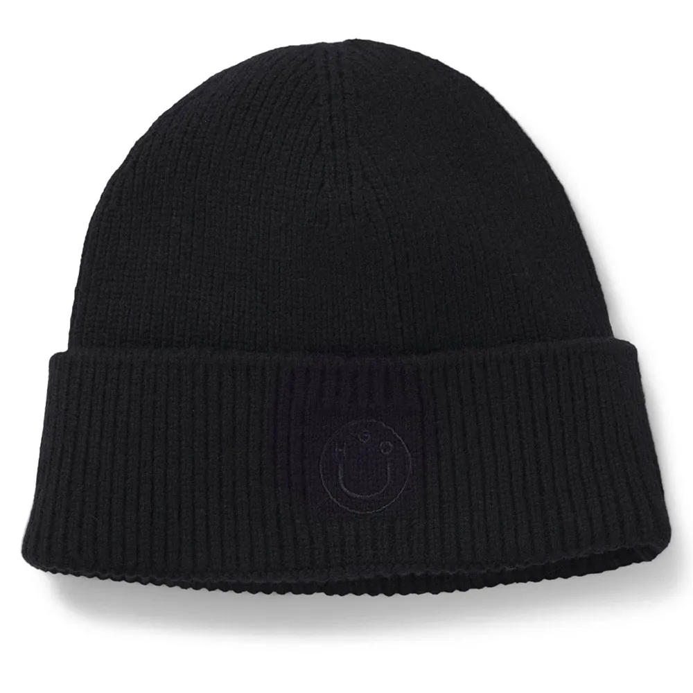Round off winter looks with the soft ribbed knit of this HUGO Womenswear beanie hat. Blended with warm virgin wool. Tonal Happy HUGO logo embroidery.