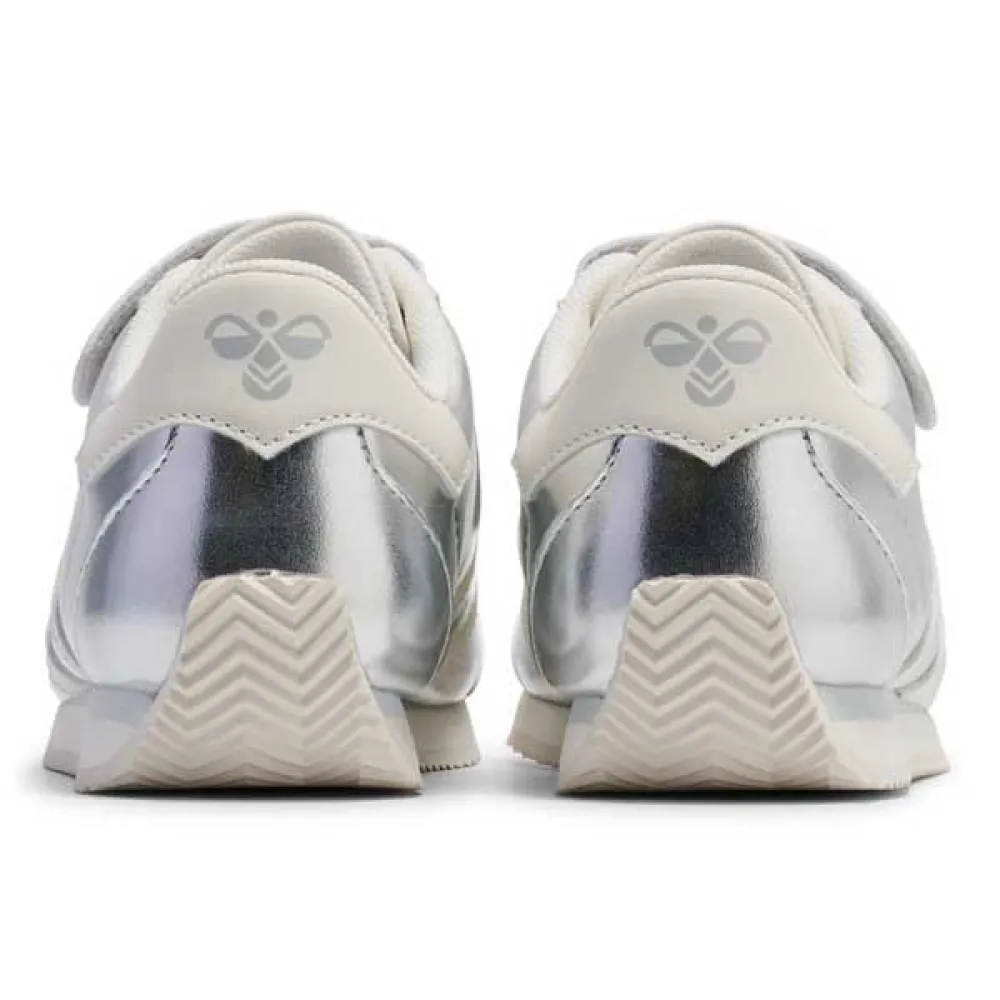 The eye-catching metallic accents add a touch of glamour and sophistication, while the iconic HUMMEL chevrons on the sides provide a timeless and recognizable touch.