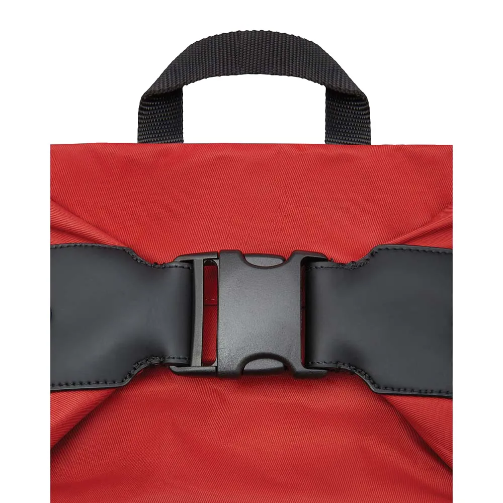 Crafted from water-resistant nylon, the neat and compact body of the bag is secured with a parachute clip and zip at the top.