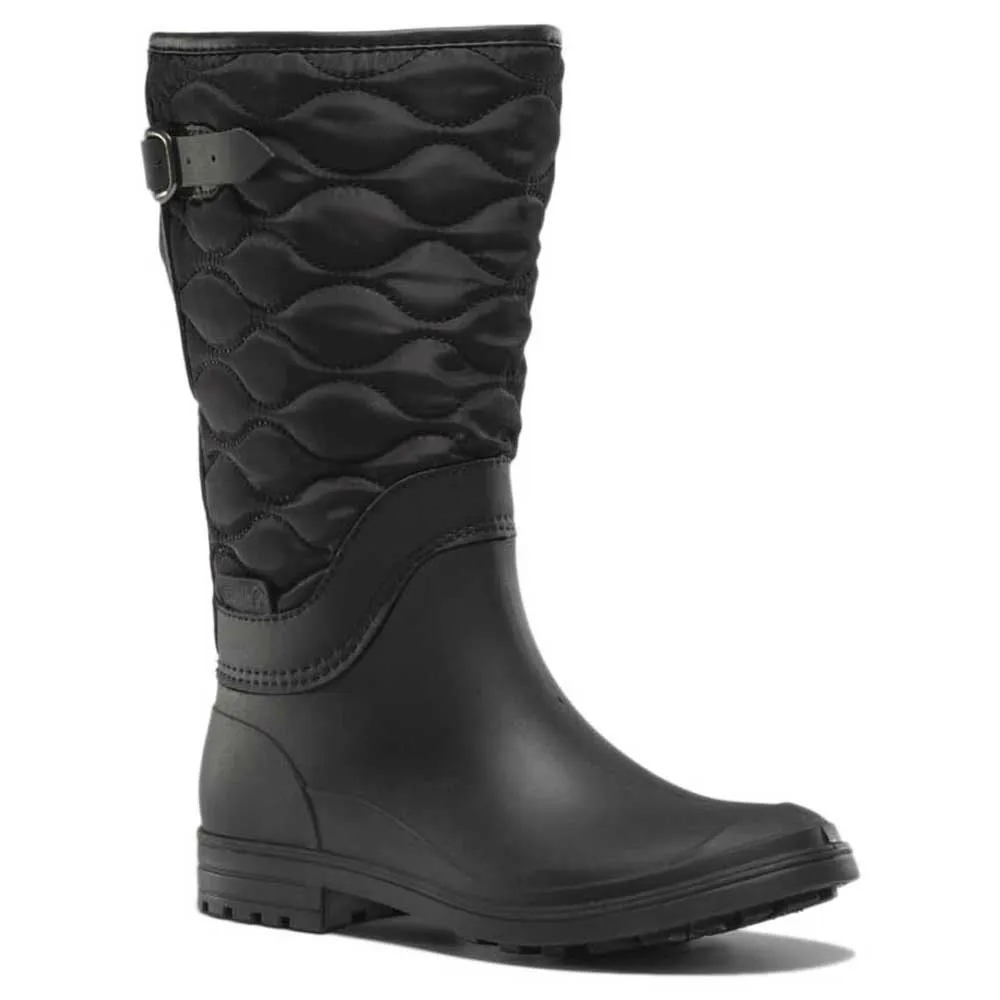 Step into fall with the KAMIK Abigail2, where heritage style meets modern practicality. These women´s boots blend a water-resistant quilted flannel upper with a lightweight, waterproof, and PVC-free RubberHe shell, keeping you dry and comfortable from city strolls to outdoor adventures. An expandable calf with an adjustable buckle provides a custom fit, while the moisture-wicking fleece and faux shearling-lined footbed deliver cozy warmth. With versatile traction for any weather, the Abigail2 is your go-to boot for staying chic and dry