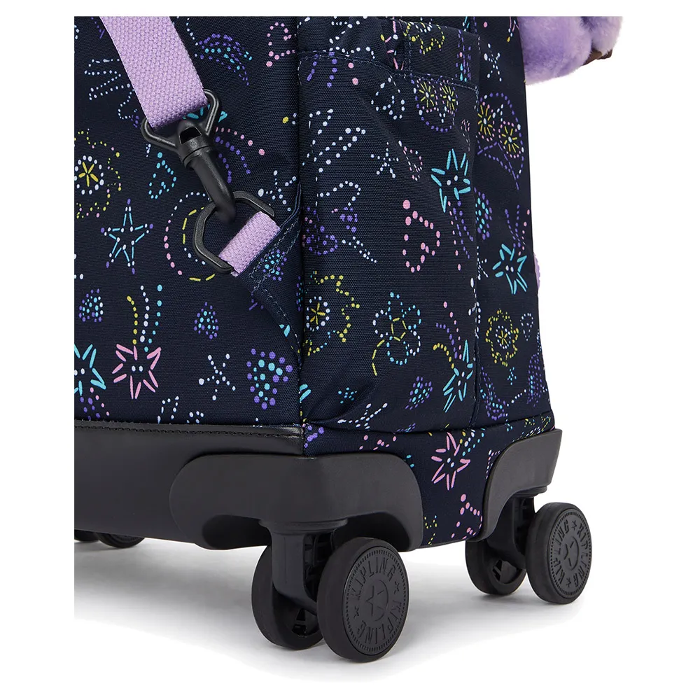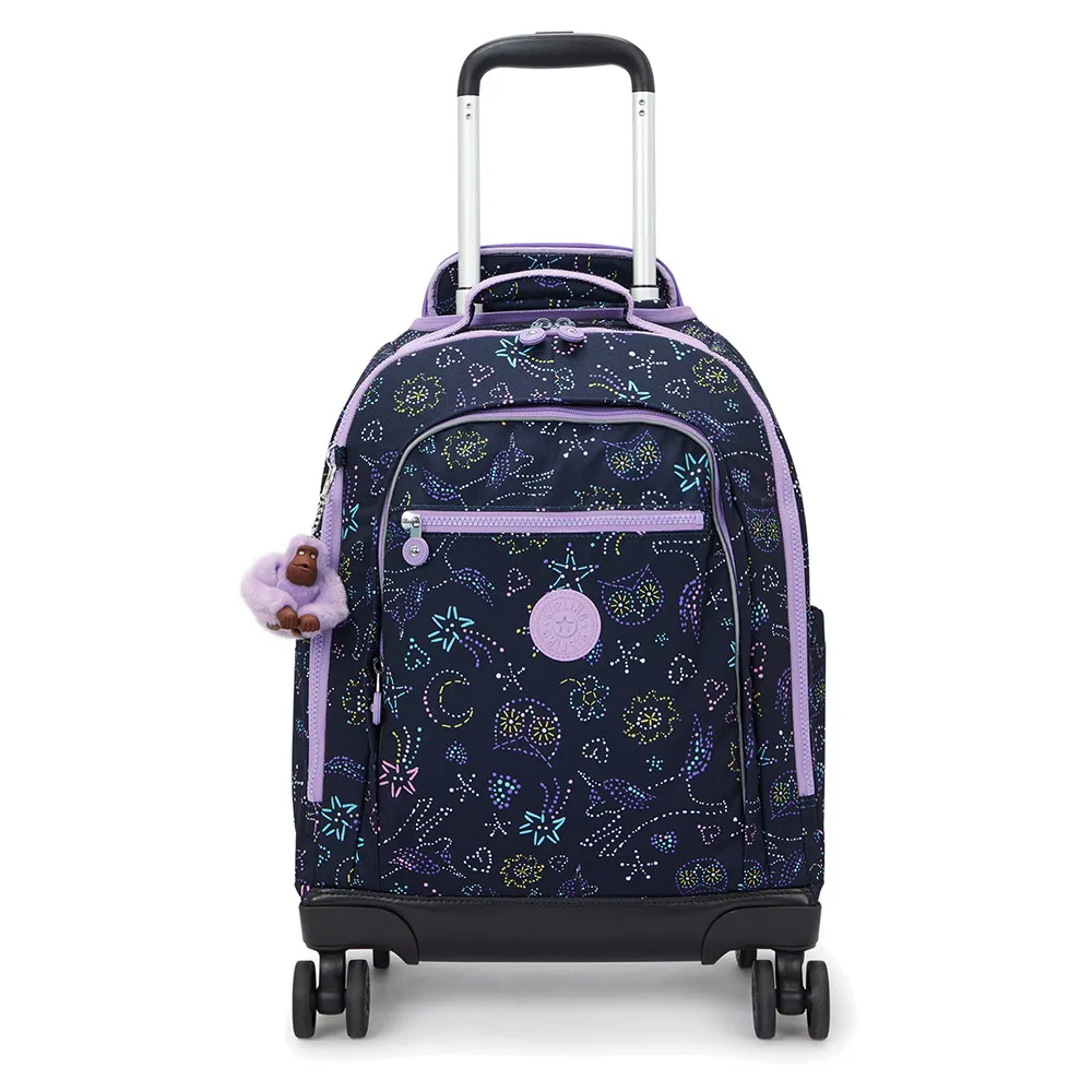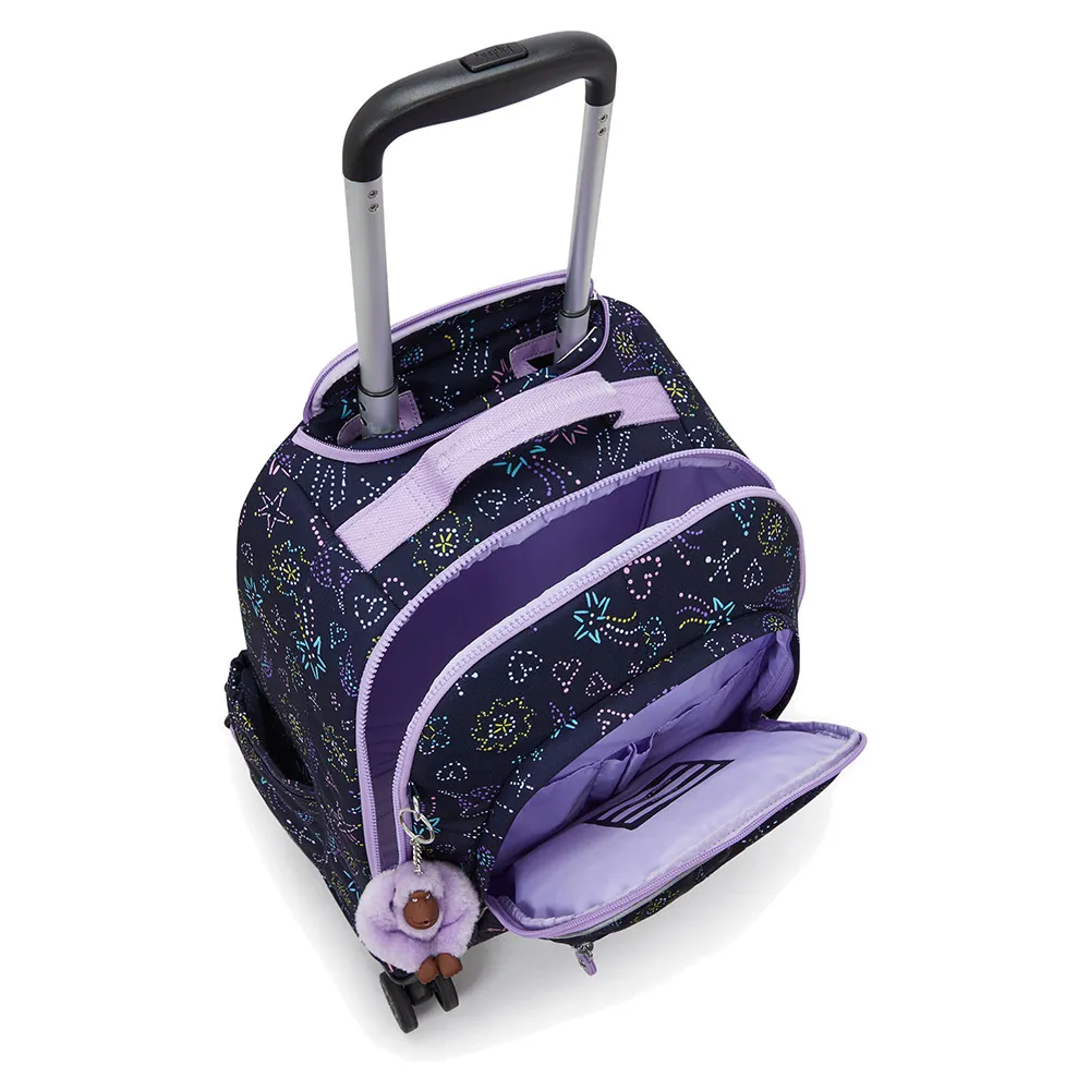 Meet the KIPLING New Zea, the ultimate 26L junior trolley backpack designed for busy school days. This versatile bag combines the convenience of a wheeled suitcase with the classic style of a backpack. Protect your tech in the padded 15" laptop sleeve and keep everything organized with A4-sized compartments and multiple pockets. Smooth-rolling wheels and a telescopic handle make heavy loads effortless. Crafted from durable polyamide with a recycled lining, it also features safety reflectors and Kipling´s iconic furry monkey charm for a touch of fun
