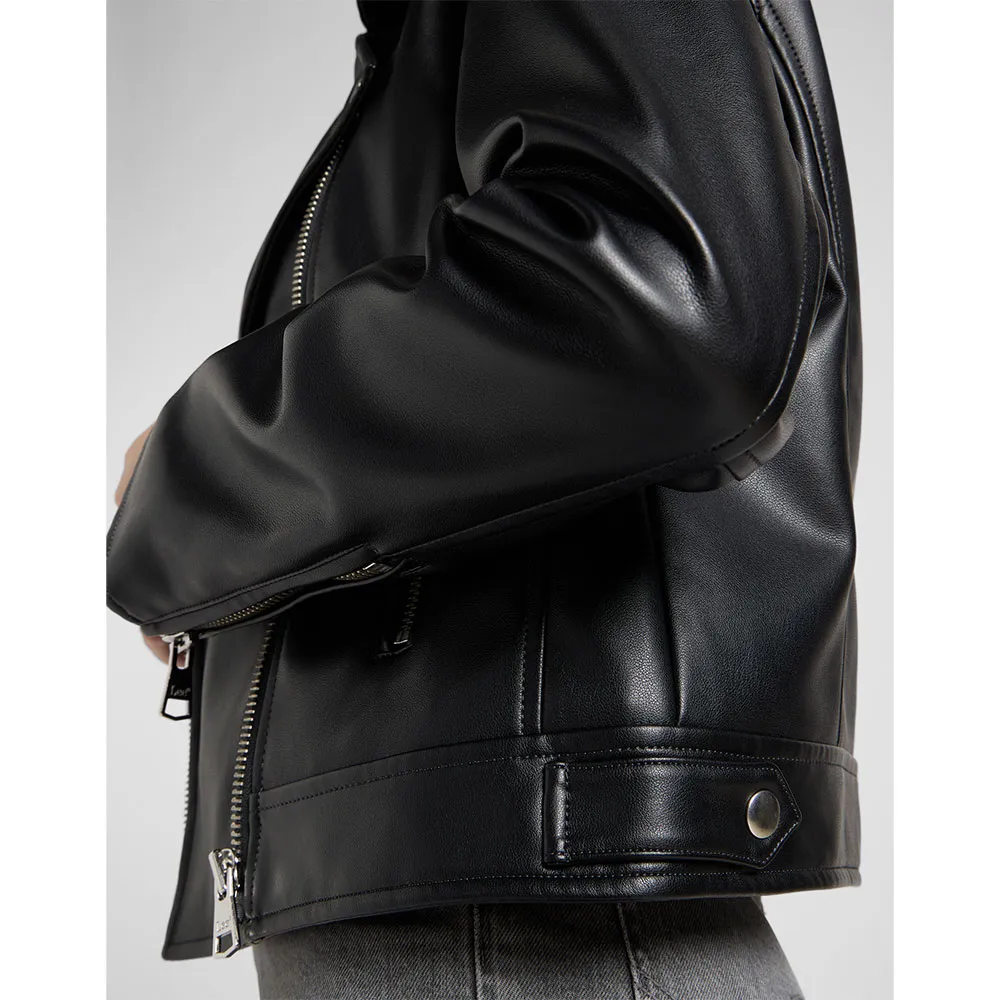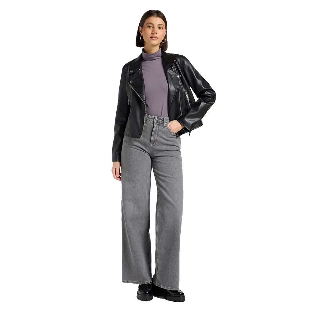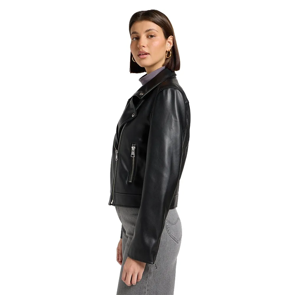 Our women´s Moto Jacket was designed with a classic, boxy relaxed fit that sits just below the waist.