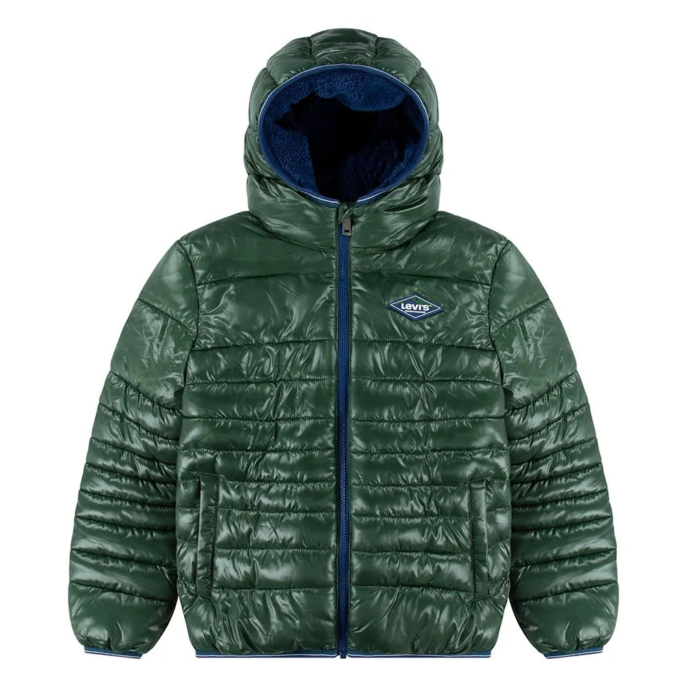 The LEVI'S® KIDS Sherpa Lined MDWT Puffer Jacket in Green is a stylish and comfortable choice for boys. With its vibrant green color, it adds a pop to any outfit and is suitable for casual wear. The jacket features a puffer design, which ensures warmth and insulation during colder seasons.
