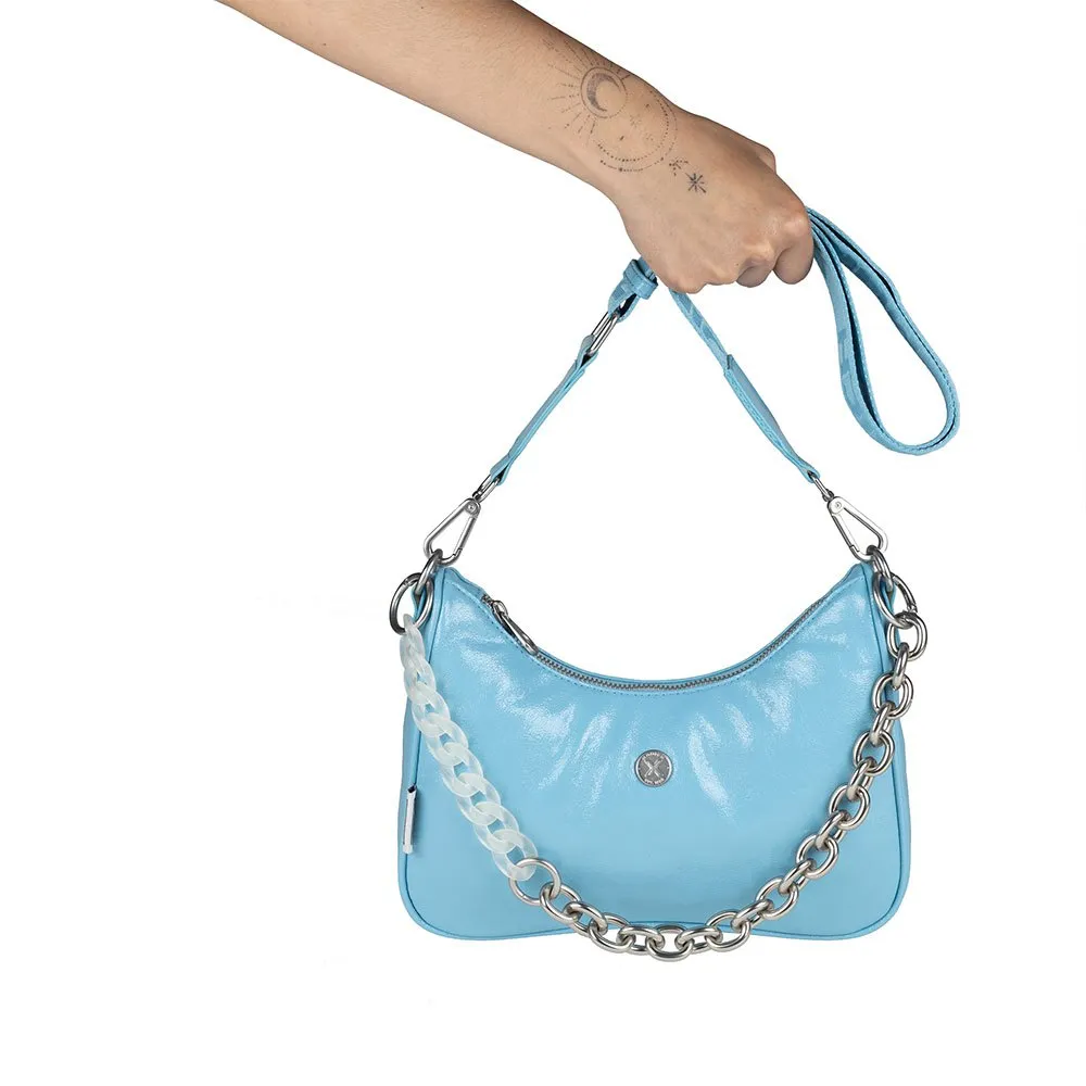 The vibrant blue color of the bag adds a touch of flair and individuality to your outfit, making it a statement piece that can elevate any look. The adjustable shoulder strap allows for a customizable and comfortable fit, making it suitable for all body types.
