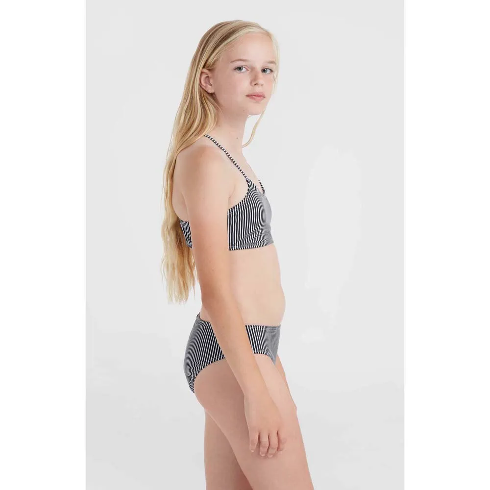 An easy-to-wear bralette top with fixed straps and removable cup padding for sizes 140 up matches perfectly with full-coverage bottoms.