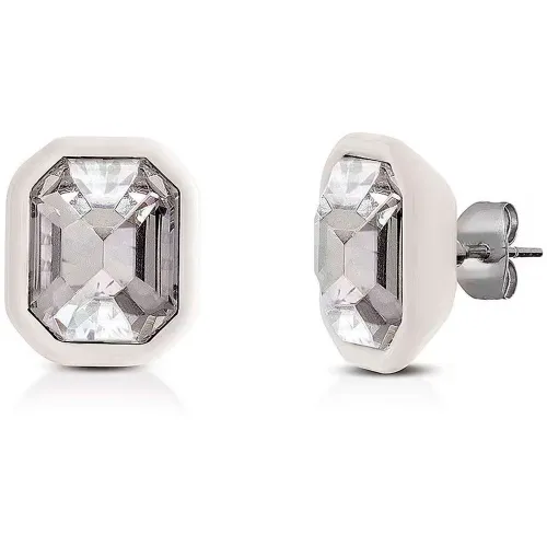 Expertly crafted, these are beautiful stud earrings in polished steel and crystals with enameled settings. The highly polished finish of the steel frame provides a brilliant, mirror-like gleam that beautifully complements the radiant central stone. This durable and lustrous setting is not only visually appealing but also designed for longevity, ensuring your earrings maintain their shine over time. The unique enameled bezel adds a subtle yet significant pop of color and a bespoke, high-fashion touch. This thoughtful detail frames the crystal perfectly, enhancing its depth and brilliance while allowing you to choose from a range of stunning hues to match your personal style, mood, or specific outfit.