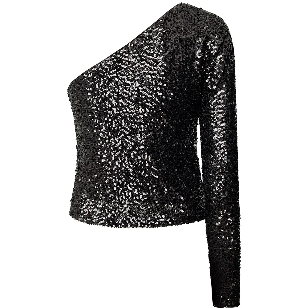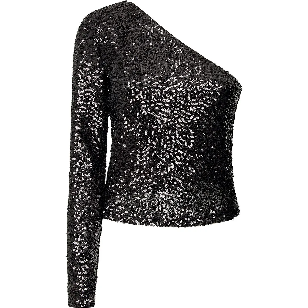 Product Group:ShirtOne shoulder sequence top.