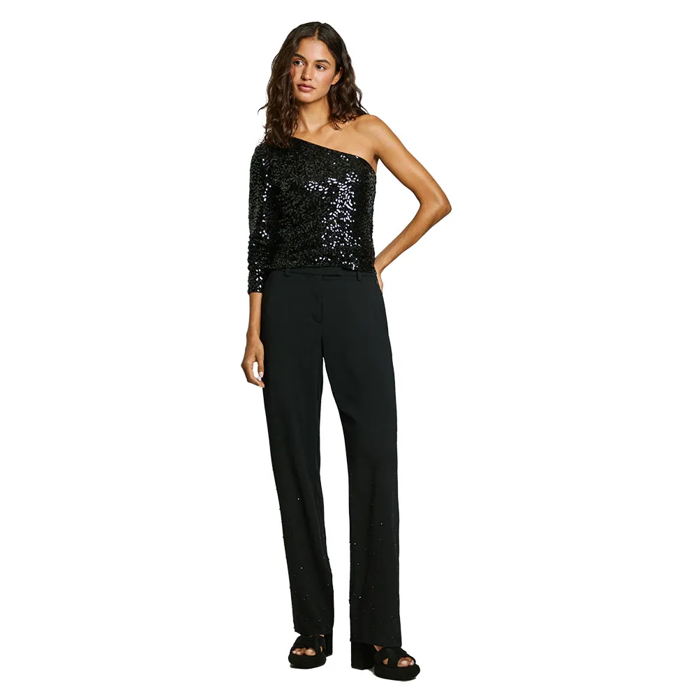 PEPE JEANS Adele One-Shoulder Sequin Top | Glamorous Sleeveless Blouse for Women