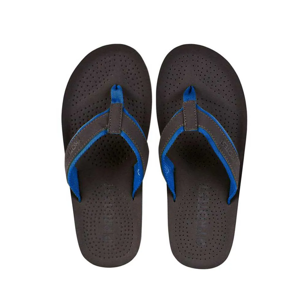 The immediate comfort of the Spice JR is undeniable. The footbed and the top of the straps of these Protest Spice JR slaps for boys are nubuck PU leather, providing a remarkably soft and pleasant feel against the skin. This premium material not only enhances comfort but also gives the flip flops a sophisticated, high-quality look that stands out. The thoughtful design ensures that from the very first wear, these flip flops feel broken-in and ready for action, eliminating the uncomfortable rubbing and blistering often associated with new summer shoes.