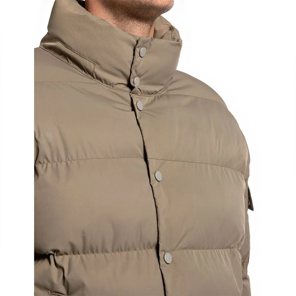 Embrace the cold in style with the REPLAY puffer jacket. Designed for the modern man, its superior synthetic insulation provides exceptional warmth without the bulk. The sleek, hoodless design offers a clean, minimalist look, perfect for city life or weekend adventures. A full zipper with an added snap closure effectively seals in heat, while zippered pockets keep your essentials secure. Lightweight, durable, and effortlessly cool, this versatile jacket is the ultimate investment in winter comfort and sophisticated, on-trend style