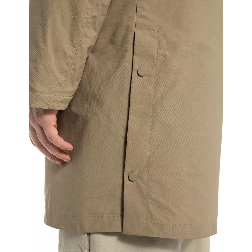 Experience robust protection and superior comfort thanks to the jacket´s thoughtful construction. The integrated, adjustable hood offers immediate shelter from wind and rain, ensuring you stay dry and comfortable when the weather turns. For enhanced defense against the elements, the jacket features a secure dual-closure system. A durable full zipper runs the length of the front, which is then concealed by a protective storm flap fastened with high-quality snap closures. This combination effectively seals out drafts, providing an extra layer of warmth and security.