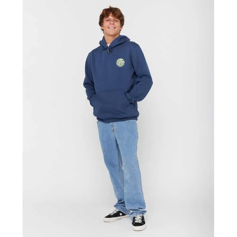 Embrace the coastal lifestyle with the Men´s Wetsuit Icon Hood. Made from a cozy blend of 60% organic cotton and 40% polyester fleece, this 320G hoodie offers the perfect balance of warmth and comfort. The garment wash gives it a soft, lived-in feel, while the standard fit ensures easy layering. Featuring a woven flag label, kanga pocket, and multiple surf-inspired prints, this hoodie is designed for those who live for the ocean.