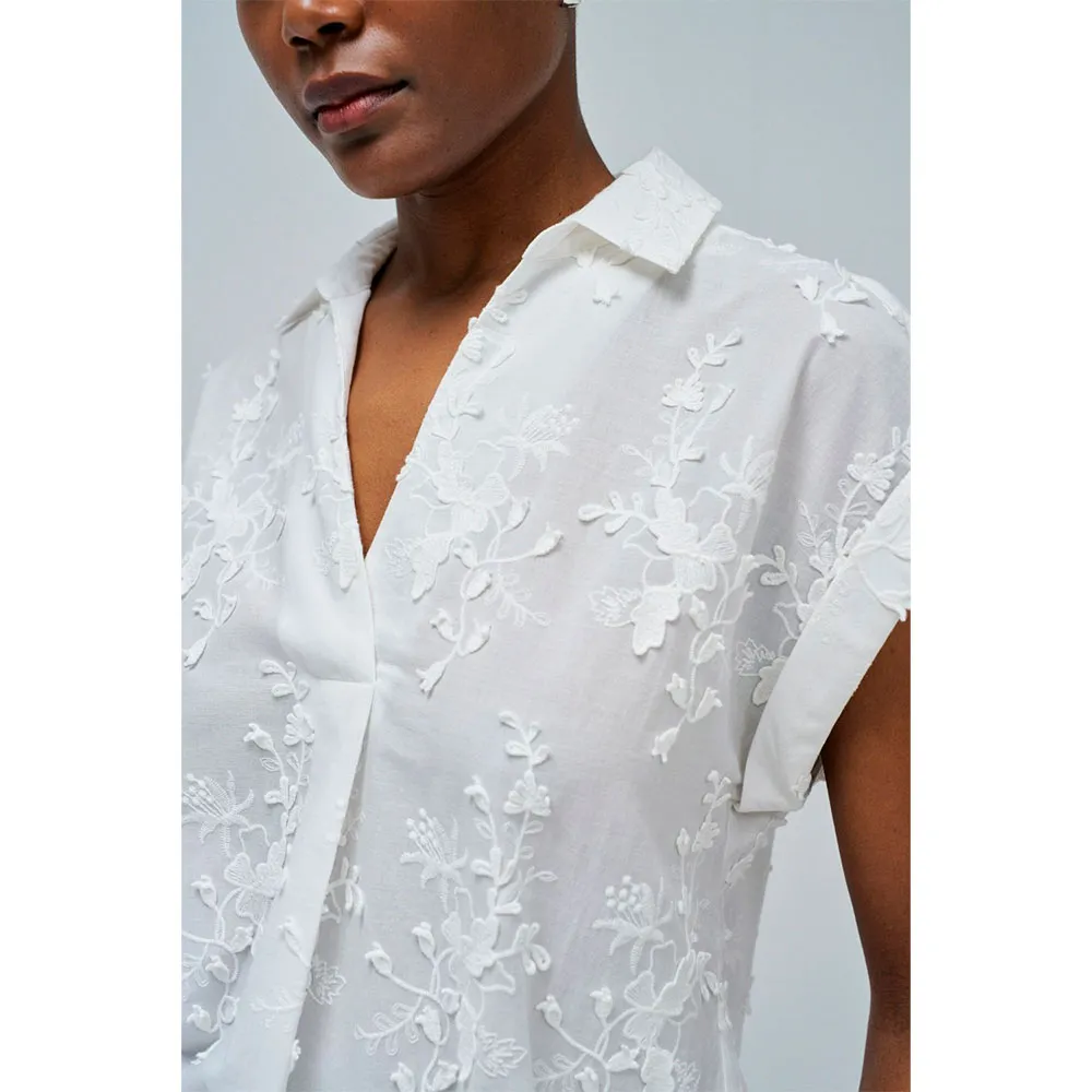 Romantic with a modern twist - this white blouse stands out for the floral embroidery with a three-dimensional effect that gives it texture and personality.