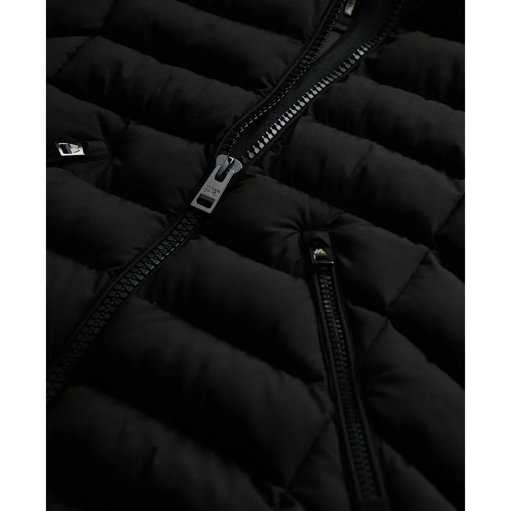 Embrace the cold with the SUPERDRY Fuji Longline Jacket. This contemporary twist on a classic puffer offers a sleek, flattering silhouette with extended coverage for unbeatable warmth without the bulk. Its signature quilted design features lightweight synthetic padding to trap heat, while a double-layer zip closure and storm flap expertly block out wind. A detachable hood adds crucial versatility, and secure zip pockets keep your essentials safe. Finished with elasticated cuffs, this jacket is the ultimate fusion of iconic style and winter-ready function