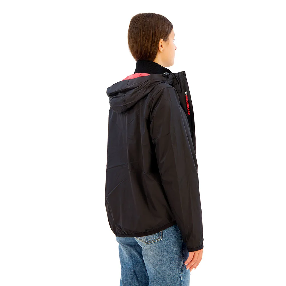 Bungee adjustable hood with elasticated cuffs and hemline.