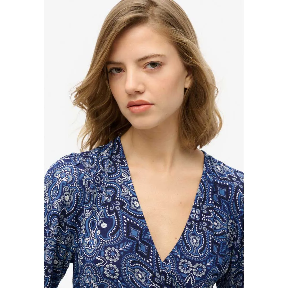Product description of Superdry Printed Wrap dress