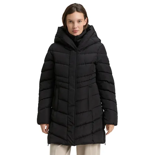 Long winter jacket in a 2-in-1 look with stand-up collar and hood, as well as zip and press stud placket.